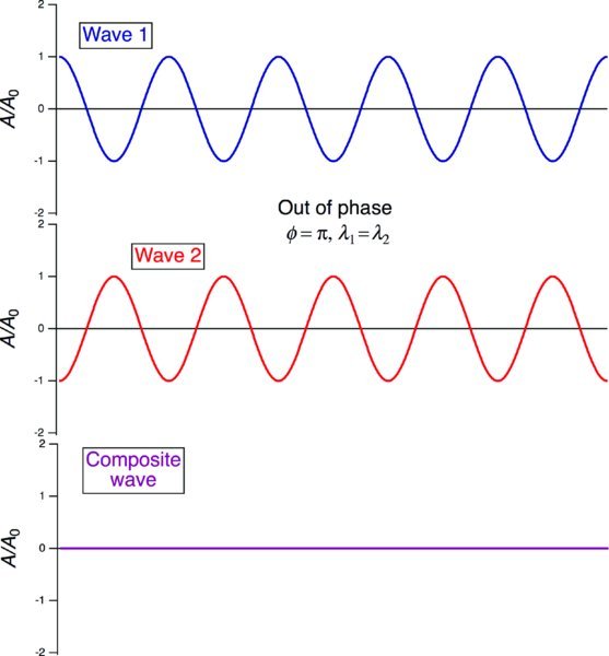Figure 19.4 The destructive interference of out-of-phase waves of the same wavelength.