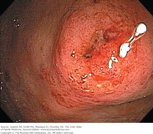A 20-year-old man presents with several days of diarrhea with a small amount of rectal bleeding with each bowel movement. This is his second episode of bloody diarrhea; the first seemed to resolve after several days and occurred several weeks ago. He has cramps that occur with each bowel movement, but feels fine between bouts of diarrhea. He has no travel history outside of the United States. He is of Jewish descent and has a cousin with Crohn disease. Colonoscopy shows mucosal friability with superficial ulceration and exudates confined to the rectosigmoid colon, and he is diagnosed with ulcerative colitis (Figure 65-1).